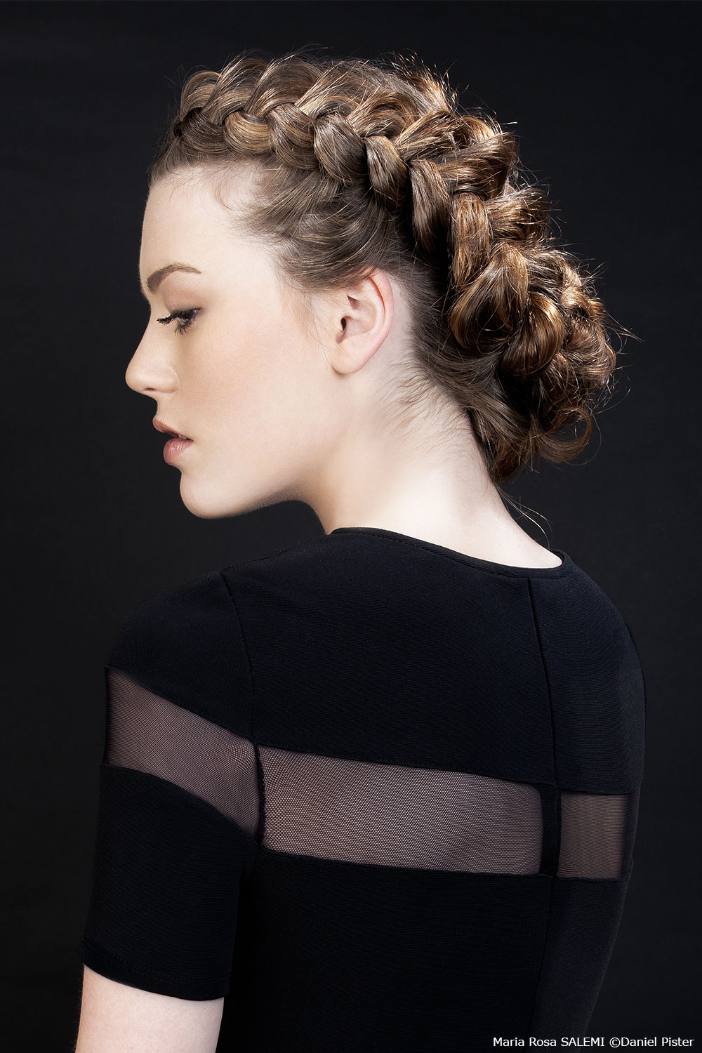 Maria Rosa bets on warm shades this Spring. The ginger color is the star this season. You can find it in different shades in order to highlight each face. The favorite one is the soft copper tone which goes with a warm brown tone. This result enhances the complexion with a makeup effect highlighting the color of the eyes. Regarding the hairstyle, the mid-length hair is adorned by a natural undulation, light during the day and more intense for the night. The hair can be loose, in a half ponytail, in a bun or even in a ponytail for a younger effect. As for the braid, it adorns the French twist this season. All of that made by Maria Rosa, 28 years old. What an artist! -