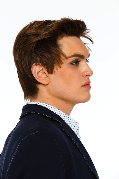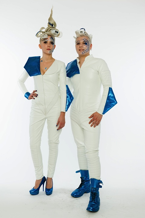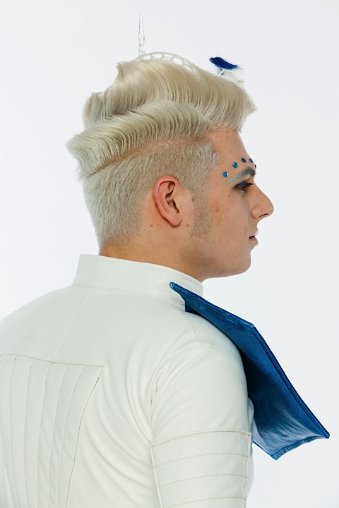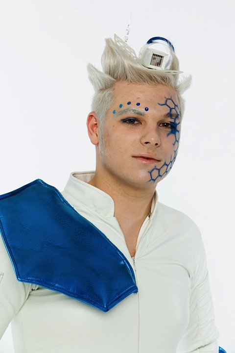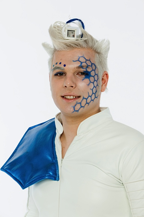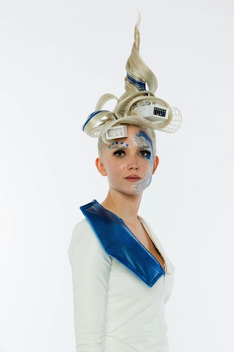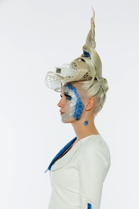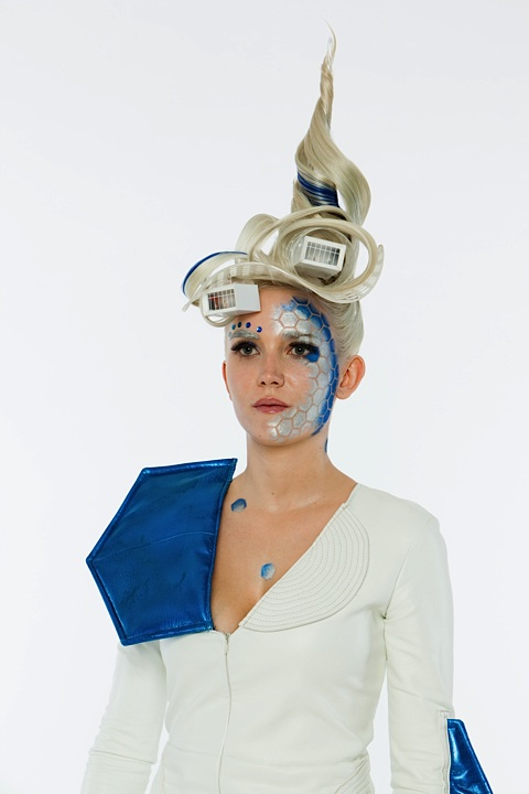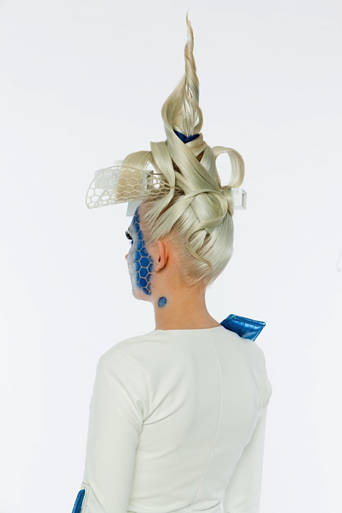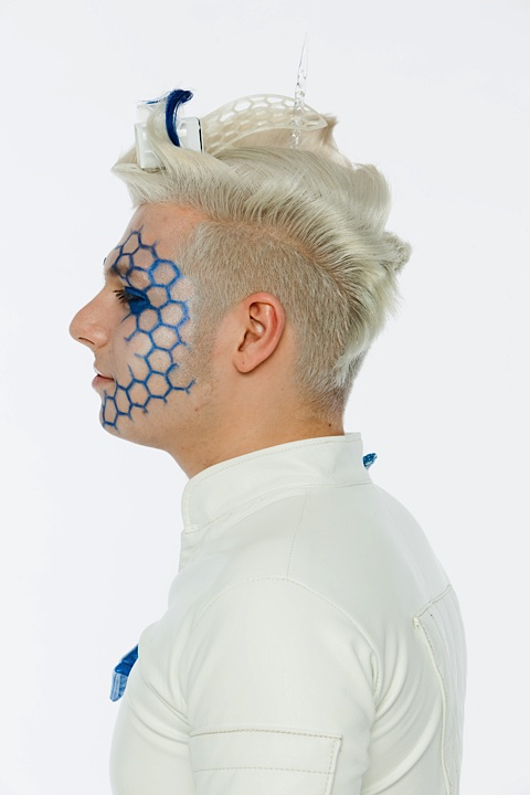 The blue hexagons were created with a stencil, the makeup reminds about the framework. -