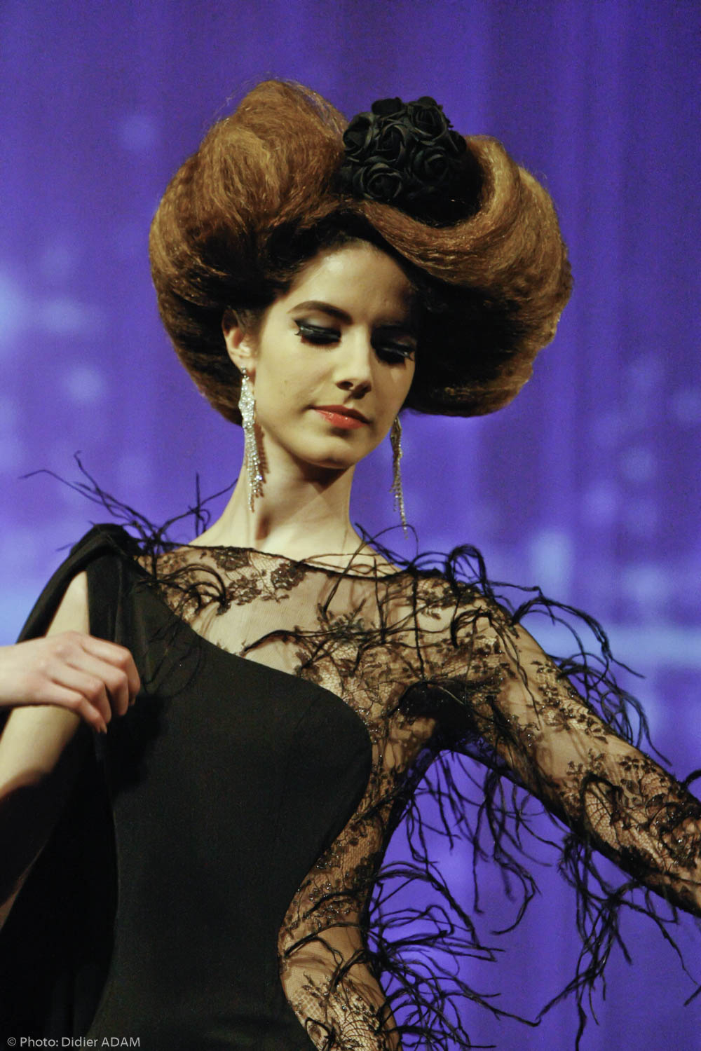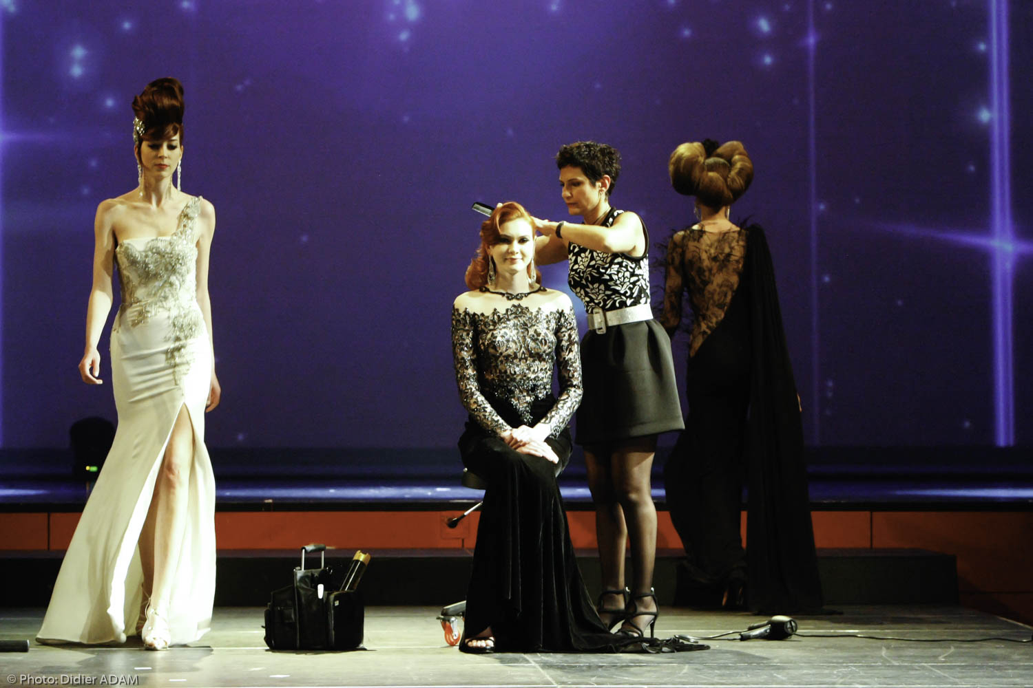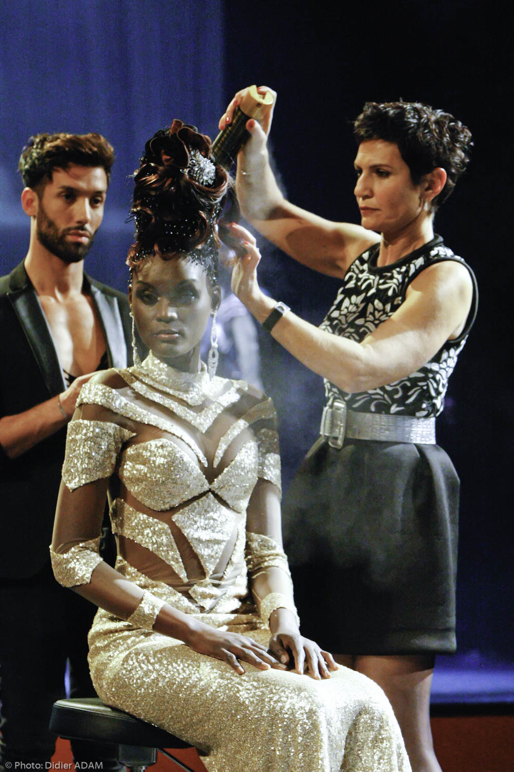 But finally, I did it and the adrenaline helped me. When the mental is strong, the physical pain can be forgotten and you can do everything! Even if my heart was beating very fast before going on stage! There was an amazing ambiance in the team, I was really happy. I would like to thank the stage director Jean- François Veran, the house Denis Durantfor the prestige dresses, the young assistant hairdresser Moha, Valérie Dumond the makeup artist and the models of course.