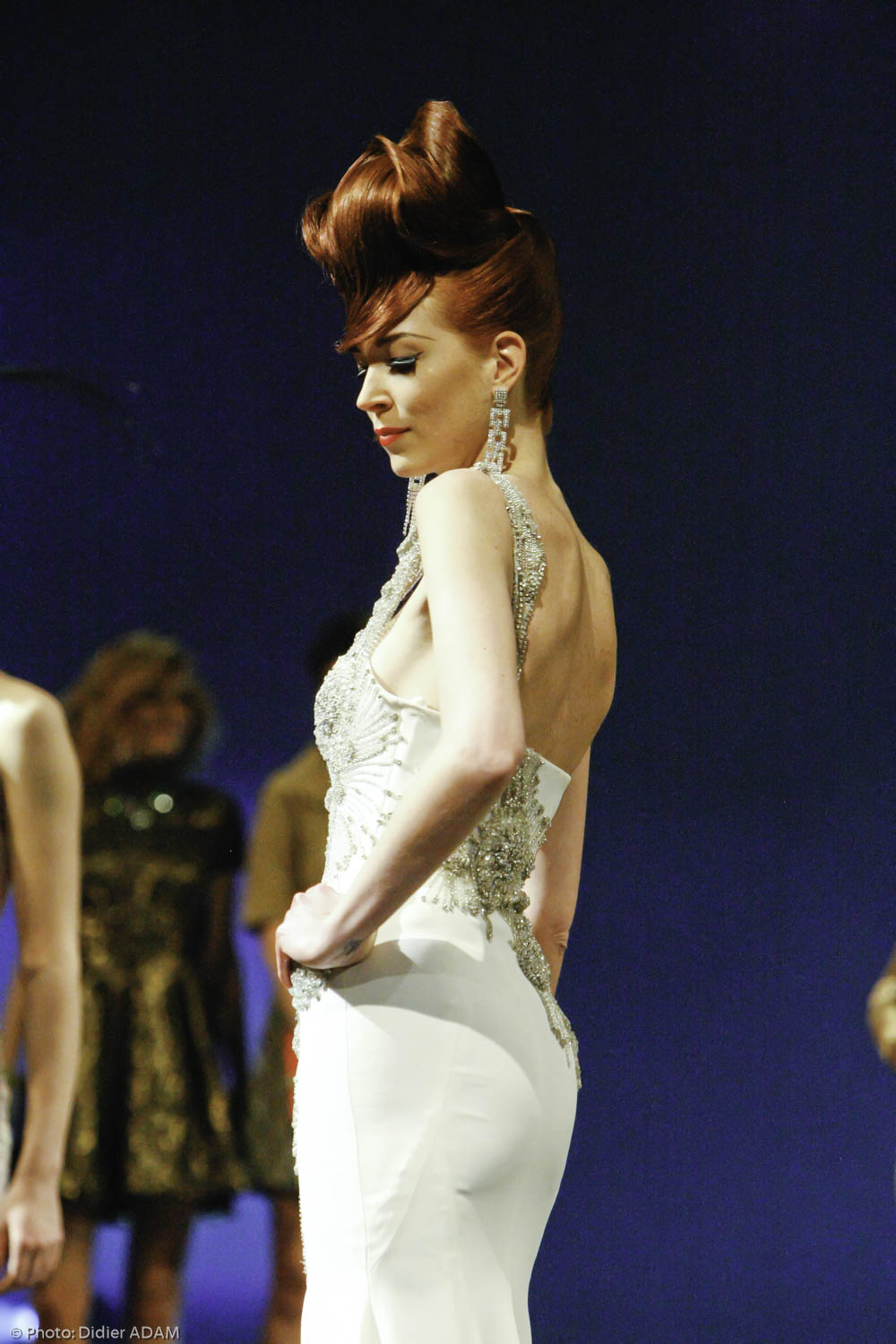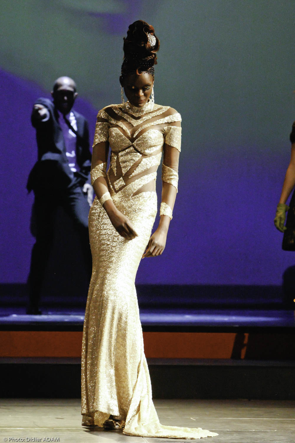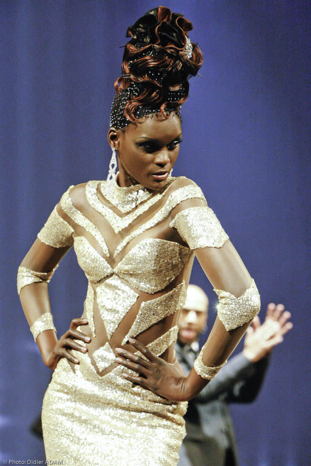 But finally, I did it and the adrenaline helped me. When the mental is strong, the physical pain can be forgotten and you can do everything! Even if my heart was beating very fast before going on stage! There was an amazing ambiance in the team, I was really happy. I would like to thank the stage director Jean- François Veran, the house Denis Durantfor the prestige dresses, the young assistant hairdresser Moha, Valérie Dumond the makeup artist and the models of course.