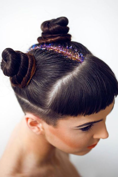 Purpurinas, locura y ¡ya estará seducido seguro! Diviértete al combinar las puntas de tu pelo o una raya con el color de tu esmalte de uña, de tu camiseta o de tu maquillaje para asumir tu lado mujer niña. Si tienes miedo de hacer huir tu querido, elije un spray glossy, mucho más discreto que hará brillar tu pelo.