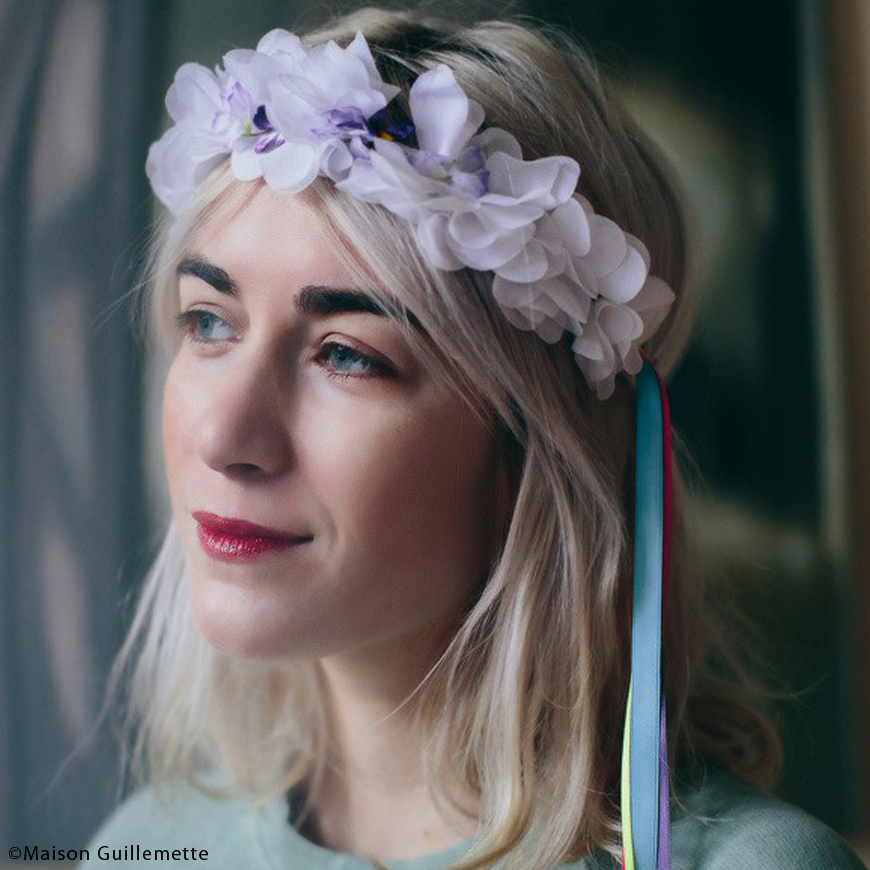 Que vous vous rendiez à un festival de folie ou non cet été, vos cheveux méritent ce headband Calvi de chez Maison Guillemette tout en fleurs d’organza et en rubans de satin multicolores.