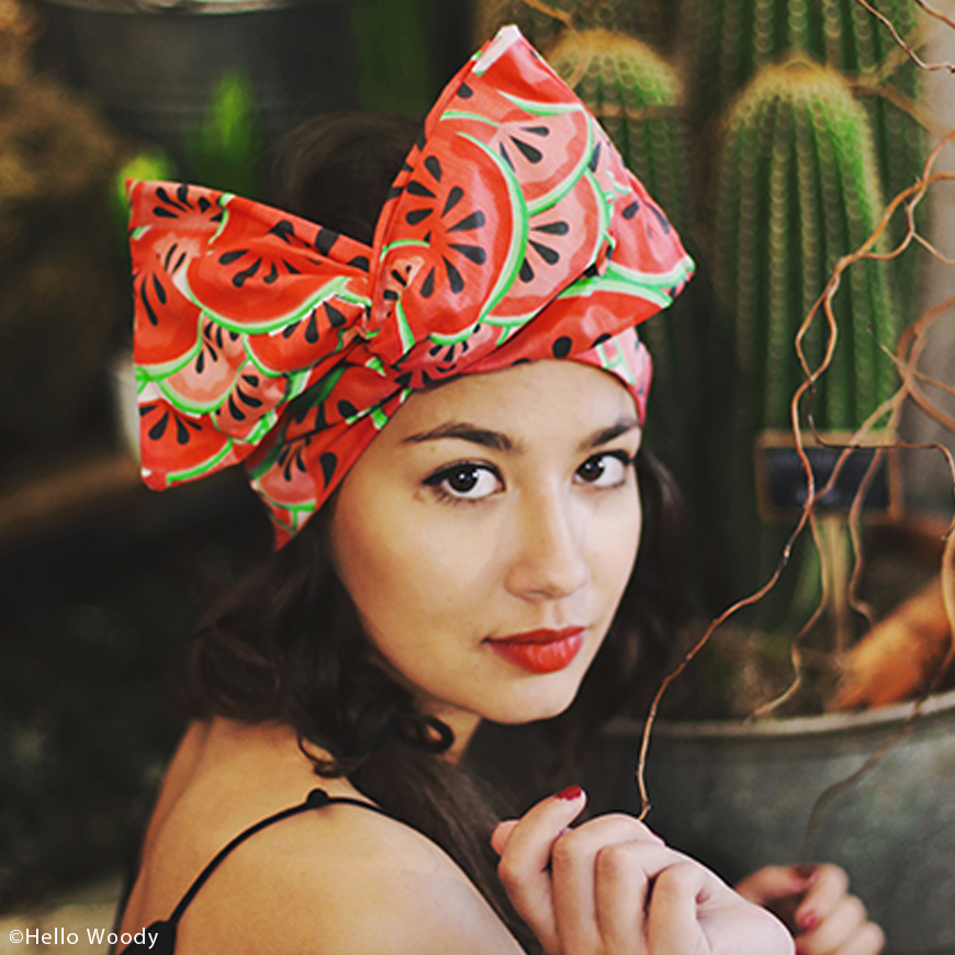 Non, on ne vous conseille pas de vous coiffer d’une pastèque… En revanche, on a repéré pour vous ce headband pastèque nœud oversize. Rafraîchissant !