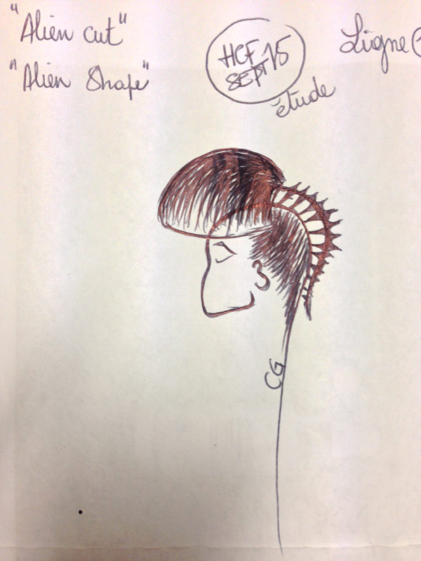 CG : en ce qui me concerne j’ai bien sûr regardé le travail de Jean-Paul Goude mais sans me laisser trop influencer. Je suis monté dans son bateau créatif, j’ai regardé son univers et je me suis laissé porter par des choses assez simples : de la matière lisse, un effet petite tête, notamment avec le bob cut. J’aime assez, pour un show, trouver le petit truc, LE geste magique. Et j’avais cette volonté que les cheveux de mon mannequin changent de couleur au contact de la chaleur de mes fers par exemple ! Et là tout comme Laetitia… j’ai fait mes expériences spéciales dans mon atelier pour obtenir cet effet zébré sur scène avec le lisseur. J’ai aussi recherché à prolonger la colonne vertébrale dans la nuque de nos mannequins pour un effet animal, ethnique…