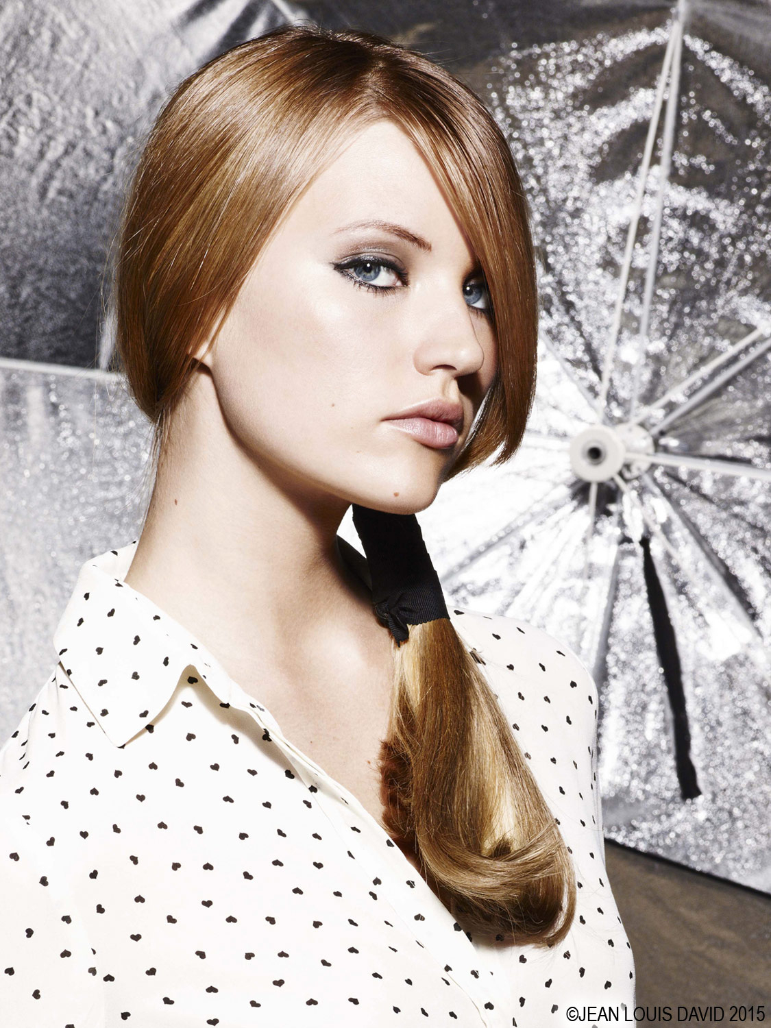 Pour cette saison estivale la queue-de-cheval se porte plutôt en bas de nuque avec une raie sur le côté ou au milieu. Le truc en plus est de penser à crêper un peu les racines afin de créer un léger volume au sommet de tête. Quelques mèches encadrant le visage peuvent être laissées négligemment au gré du vent.