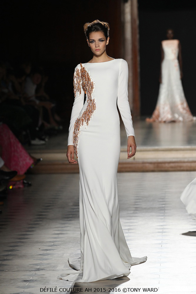 Chez Tony Ward les coiffures sont beaucoup plus décoiffées, donnant l’impression que les modèles n’ont pas de coiffeurs cabines à leur disposition ou alors que l’on a attaché leurs cheveux en mode express ! Des attaches qui s’avérent idéales pour contraster avec une robe so chic. Bien qu’en paréo et tongs ce mois-ci, rien ne vous empêche de vous inspirer de ces coiffures de défilé pour vos soirées d’été !